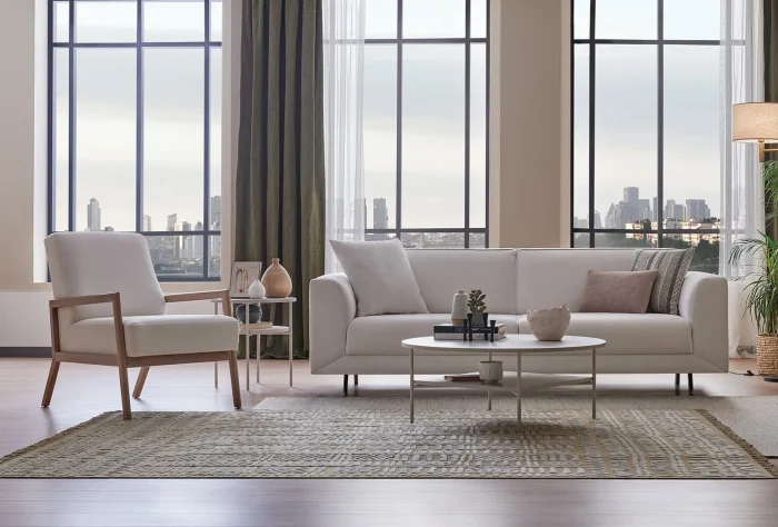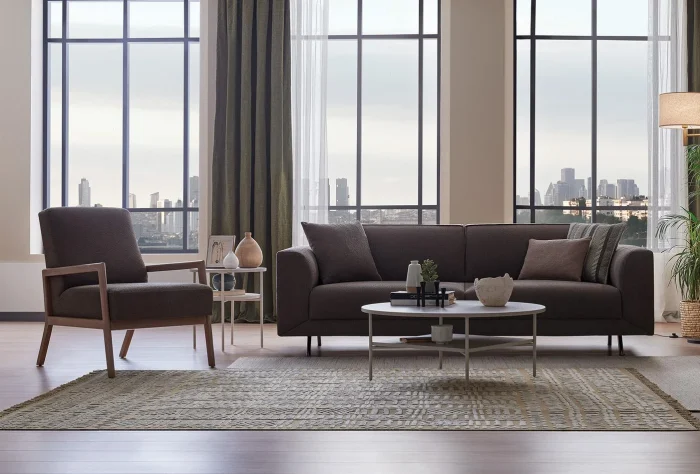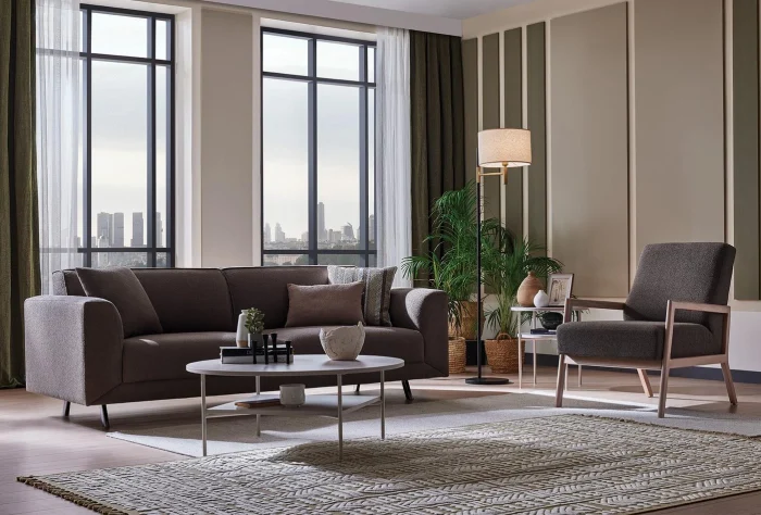 Yaşam alanlarında yüksek konfor ile şekillenen yeni nesil koltuk tasarımlarının şık bir örneğini sunan FORTUNA KOLTUK TAKIMI, modern tarzını fonksiyonel detaylarla tamamlıyor. Metal destekli ahşap konstrüksiyonunu rahat oturum yapısı ile buluşturarak uzun ömürlü bir konfor alanı yaratıyor. 3’lü koltuk modülünün yatak olabilme özelliği sayesinde gerektiğinde ekstra bir yatağa dönüşerek çok yönlü kullanım avantajı sunuyor. Antrasit ve ceviz olmak üzere iki farklı ayak rengi alternatifi ve zengin kırlent uygulamaları ile dikkat çeken dekoratif kurgulara hayat verirken, yüksek ayak yapısı ile temizlik kolaylığı sağlıyor.